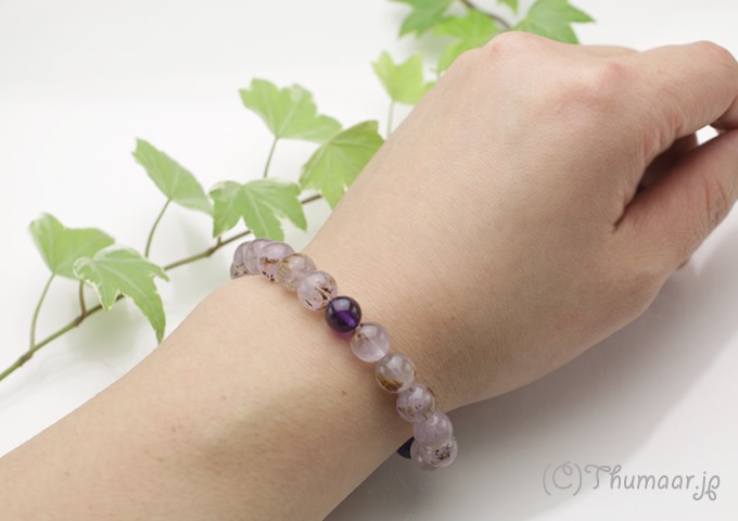 | ゲーサイトインアメジストとアメジストのブレスレット【9mm】の販売。高品質で鑑別済みの、パワーストーンのThumaar.jp(スマール) |